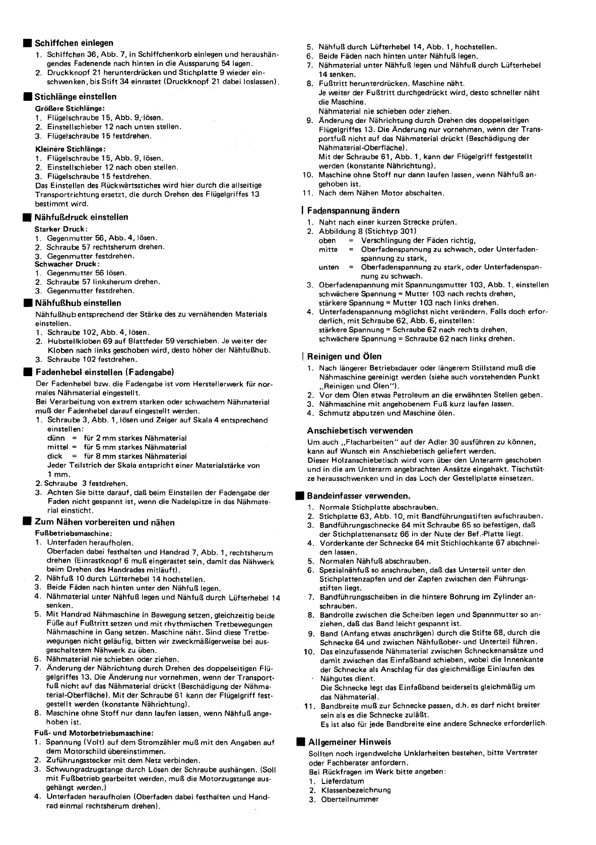 • Fadenhebel einstellen (Fadengabe)
