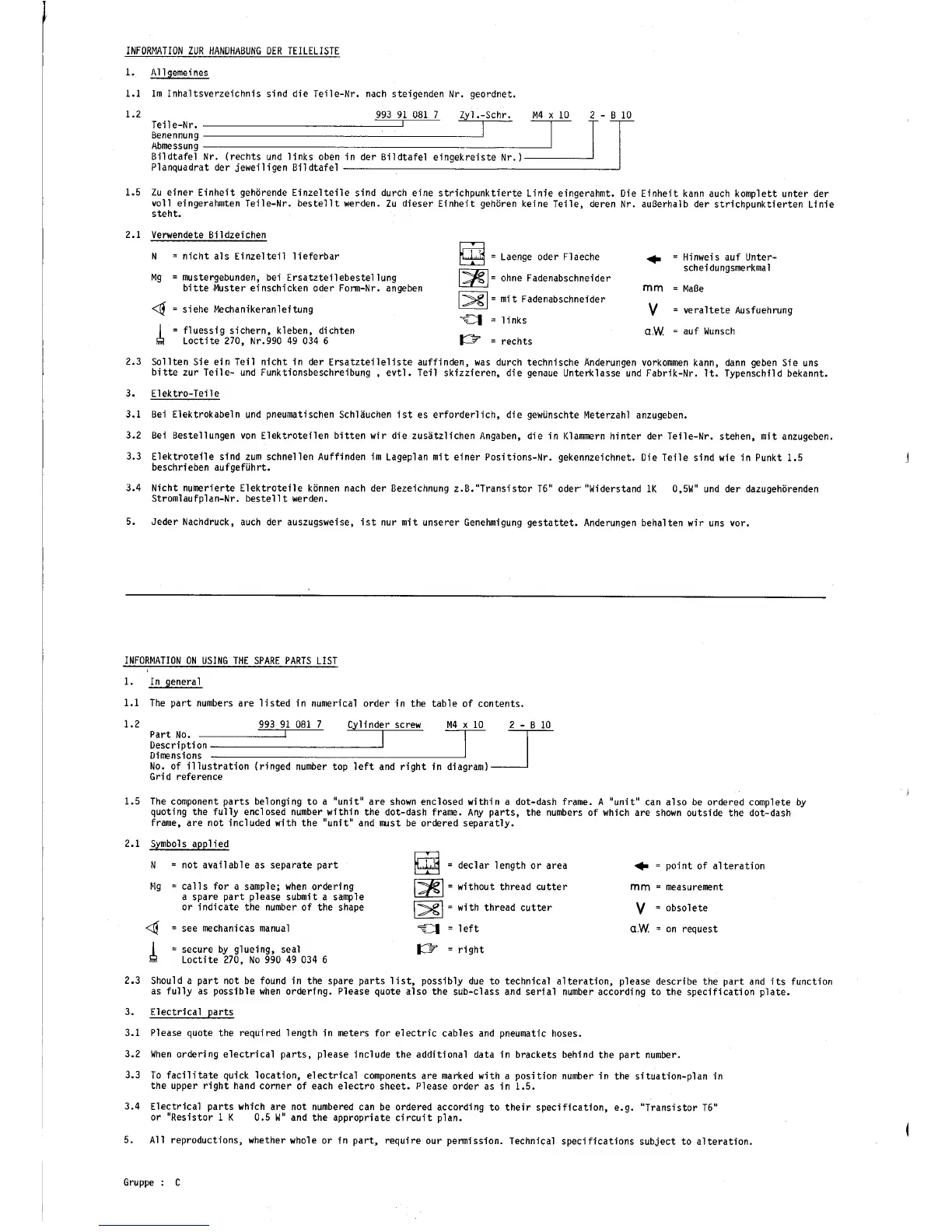 Adler 98-2-8 - Using the Spare Parts List; General Information and Part Numbering; Understanding Spare Parts Symbols and Codes; Guidelines for Electrical Parts Orders