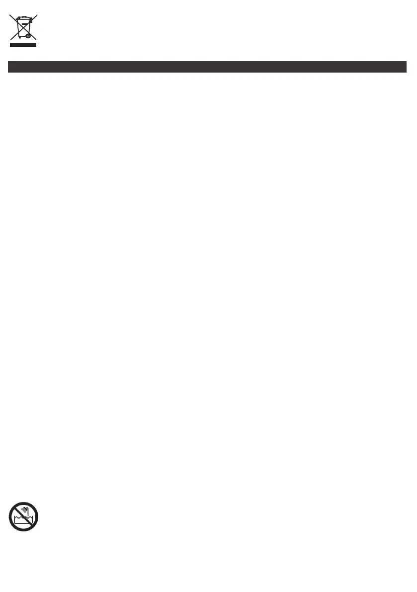 17. Laitetta eikä virtalähdettä saa päästää kastumaan. Jos laite putoaa veteen, on pistoke