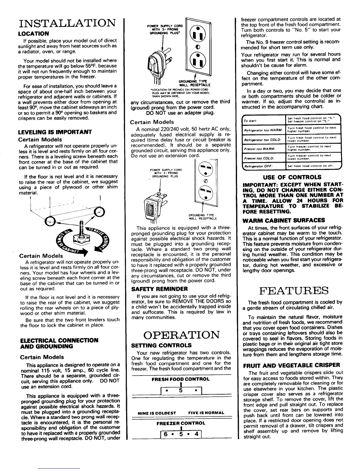 LEVEMNG IS IMPORTANT A nominal 220/240 volt, 50 hertz AC only, R_qrige,_t..... WARM".............