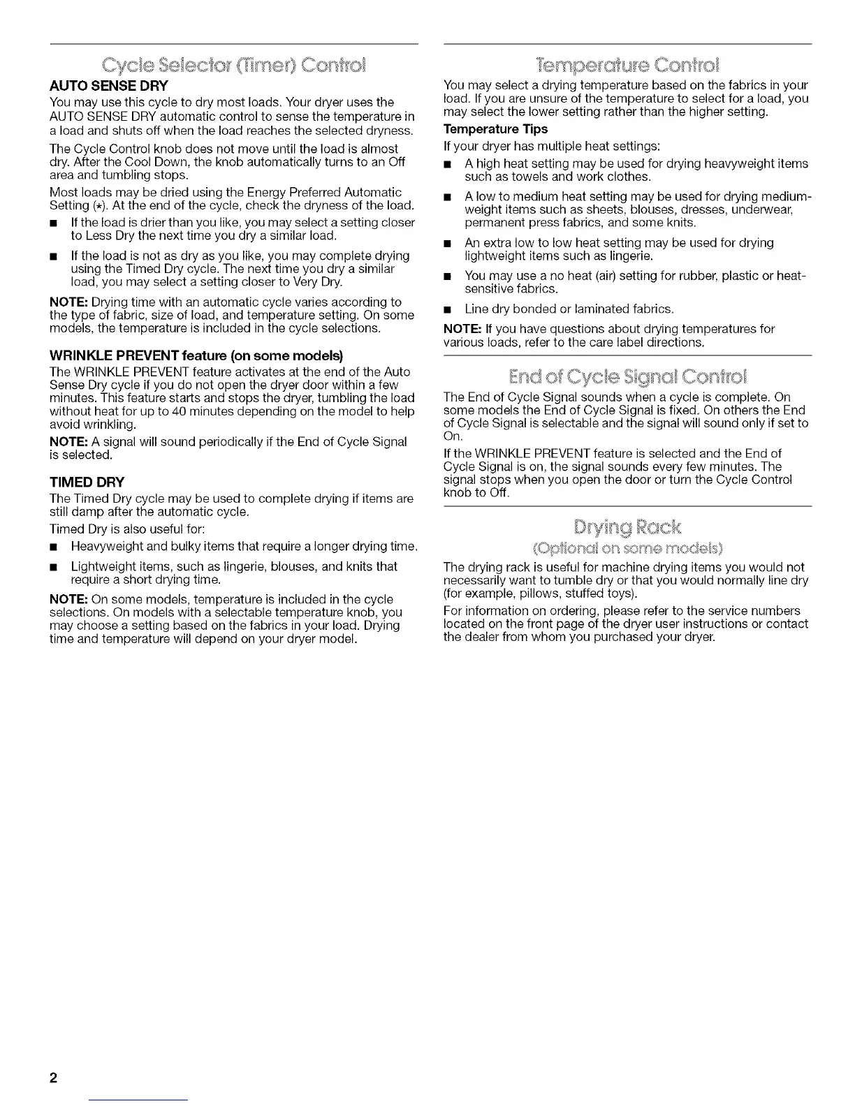 You may use this cycle to dry most loads. Your dryer uses the