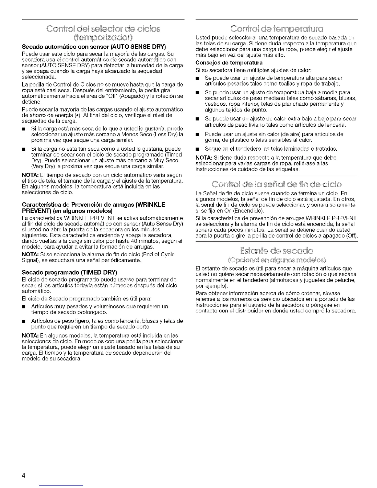 siguientes. Esta caracterfstica enciende y apaga la secadora,