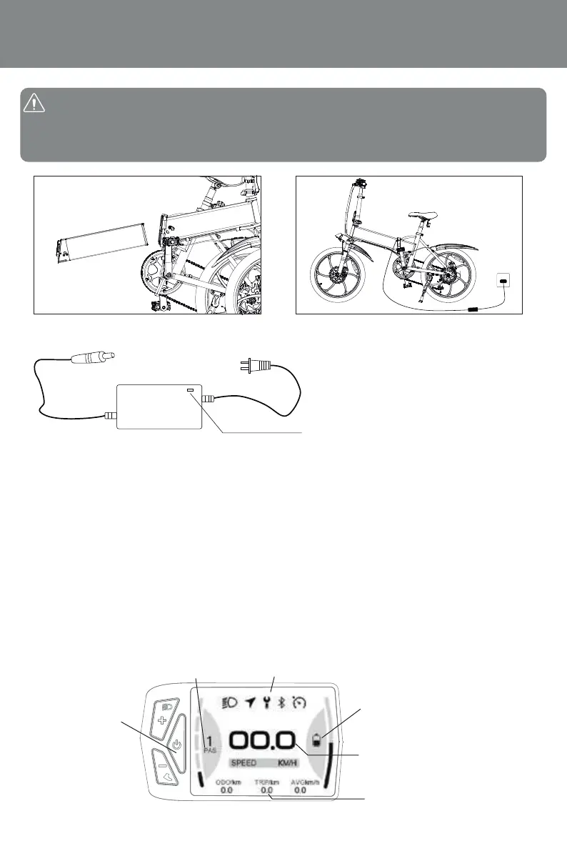 Note: Before using the bicycle, insert the ey and turn it counterclocwise by 45, the battery is activated.