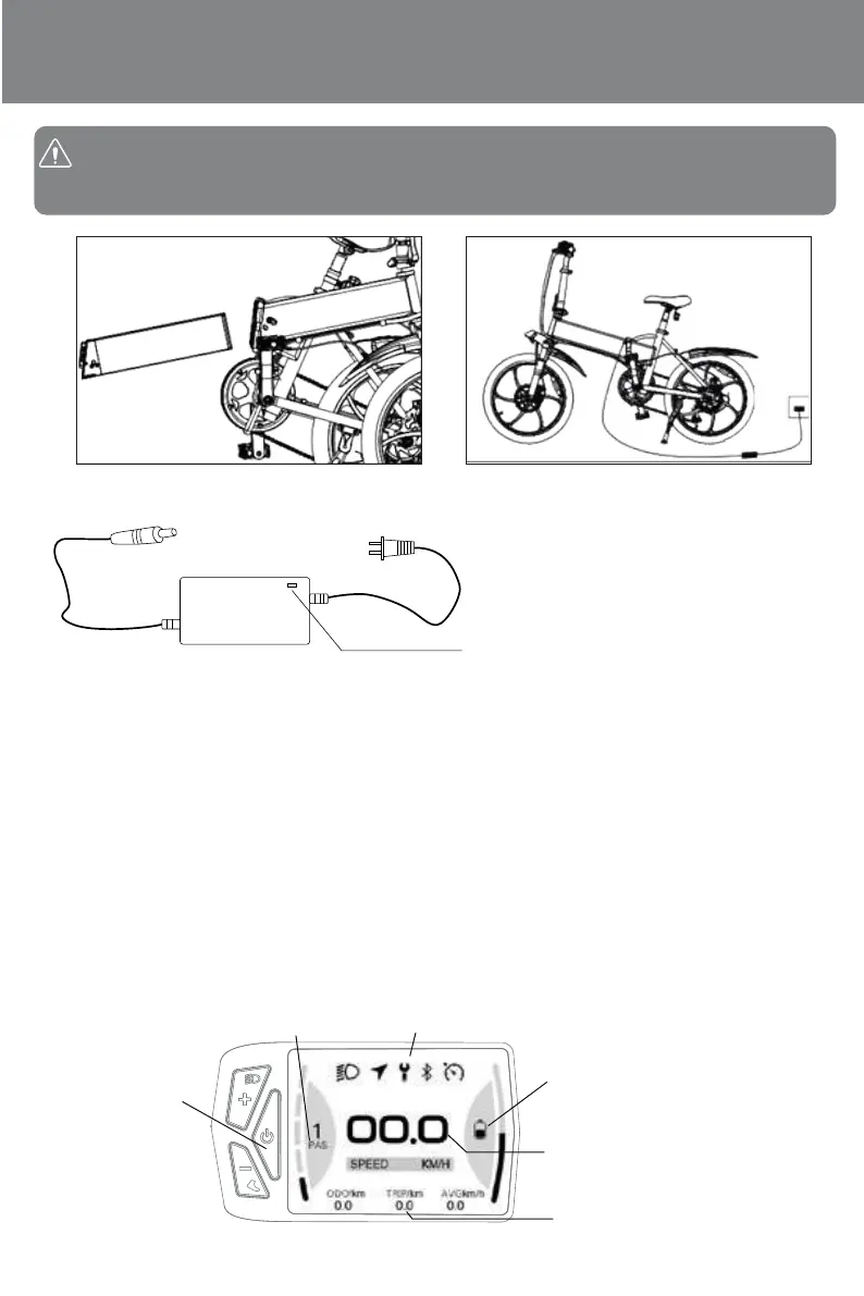 1.Carregar durante 3 segundos na tecla Power para ligar/desligar a mota;