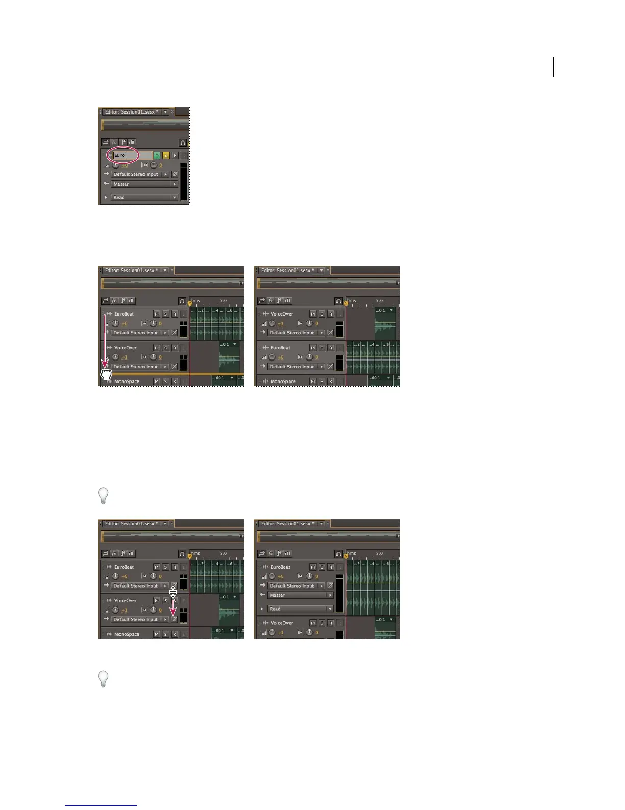• Position the pointer to the left of the track name, and then drag either up or down in the Editor panel, or right or