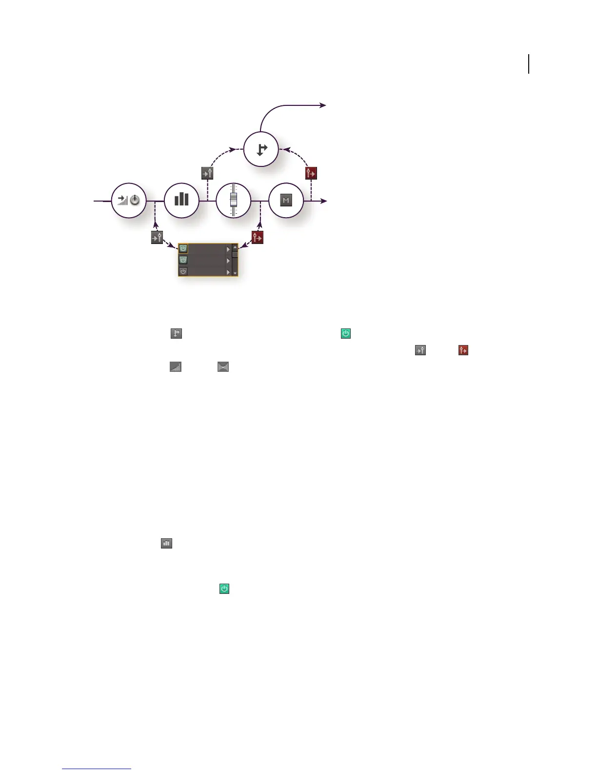 1 In the Sends area of the Mixer, click the send Power button .