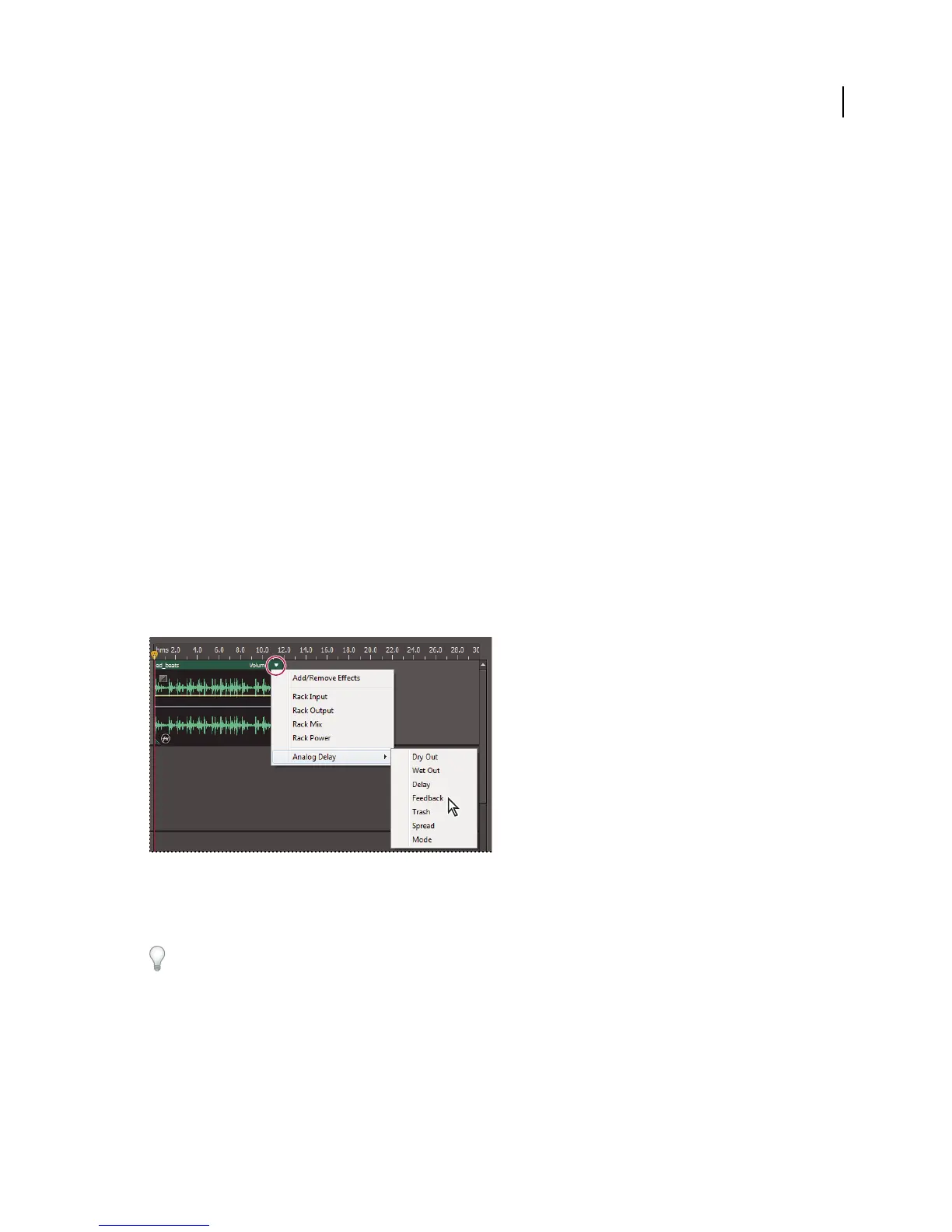 ❖ In the upper-right corner of a clip, click the parameter menu, and select a Rack mixing option or an effect