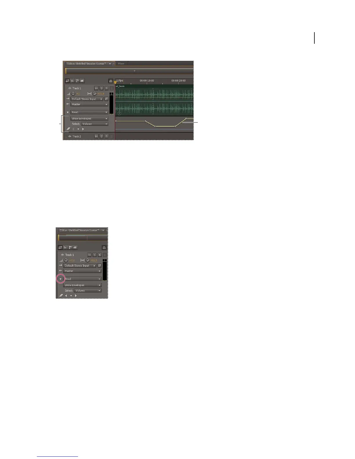 1 In Editor panel, click the triangle to the left of the Read menu for the track you want to automate.