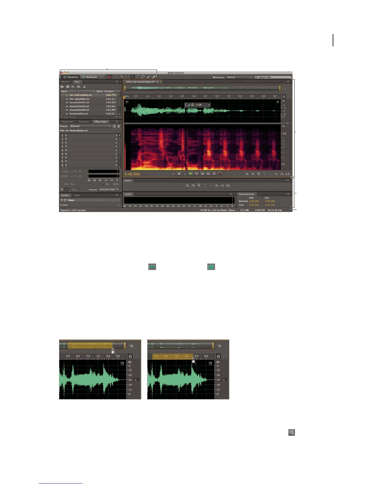 • From the View menu, choose Waveform or Multitrack Editor.
