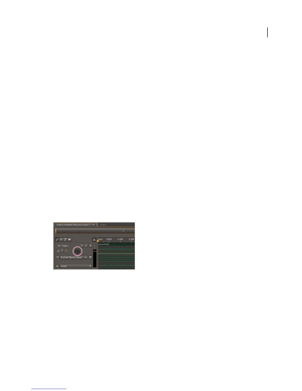 • Choose Window > Track Panner. Then select a mono or stereo track in the Editor panel.