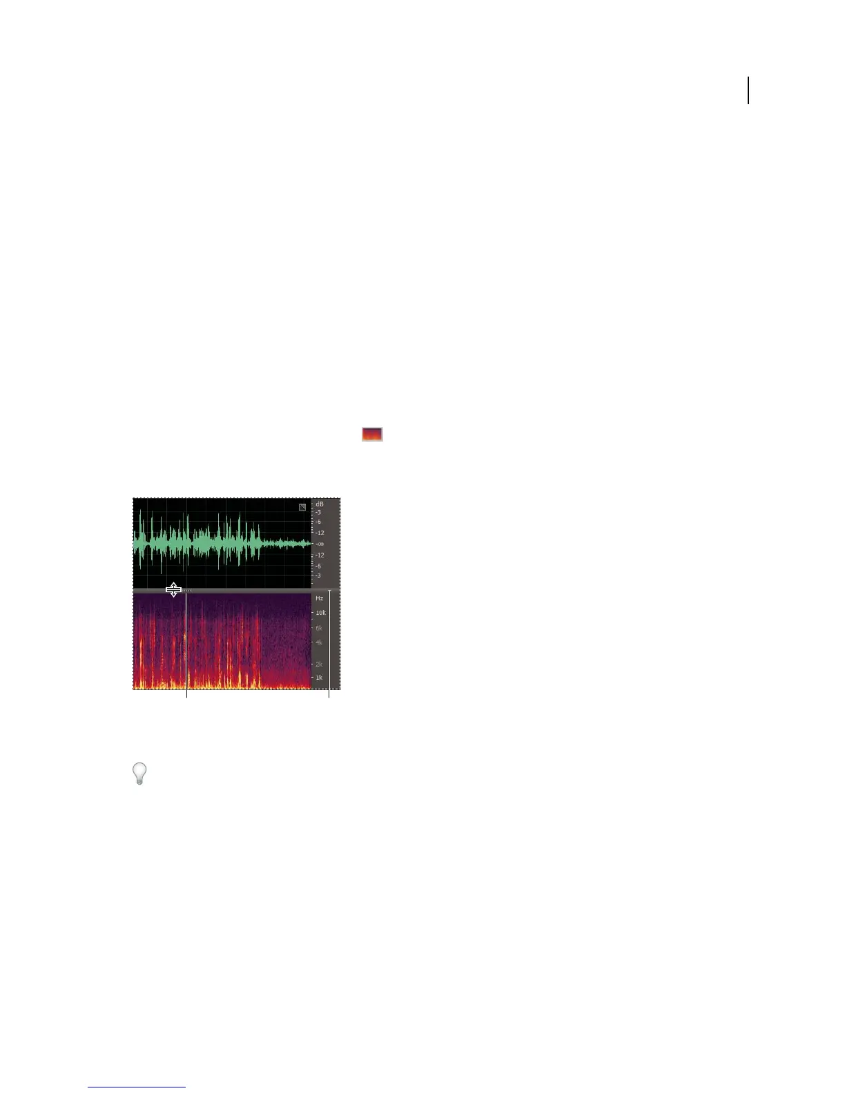 • In the Editor panel, drag the divider between the waveform and spectral displays to change the proportion of each.