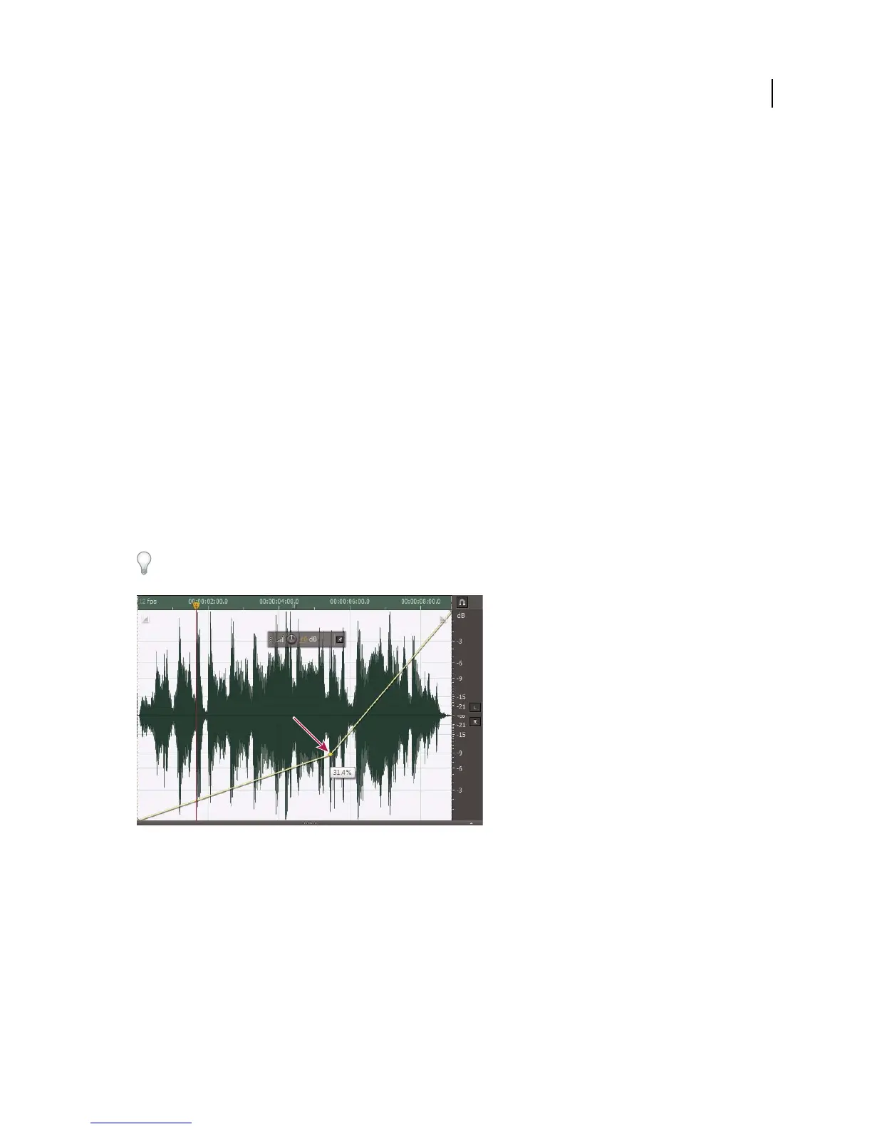 Yellow envelope line in Editor panel Drag to adjust amplitude percentage, and click to add keyframes for additional
