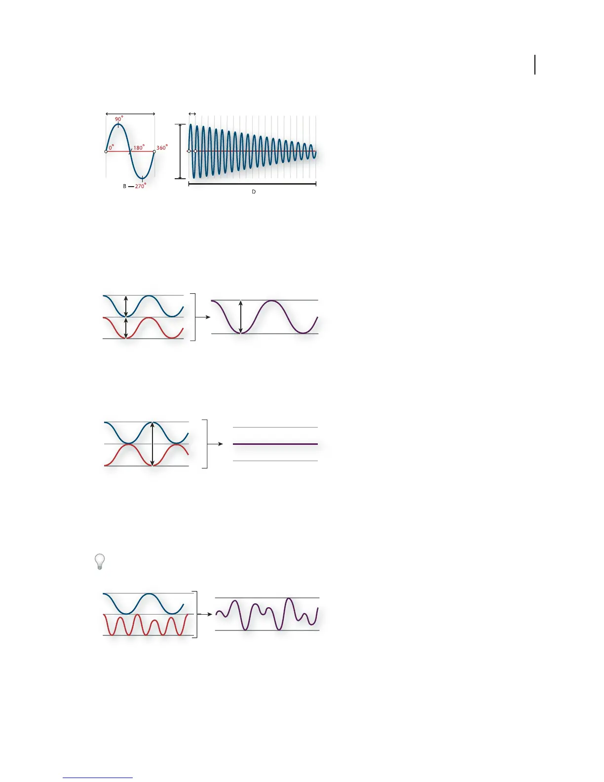 In most cases, however, waves are out of phase in varying amounts, resulting in a combined waveform that is more