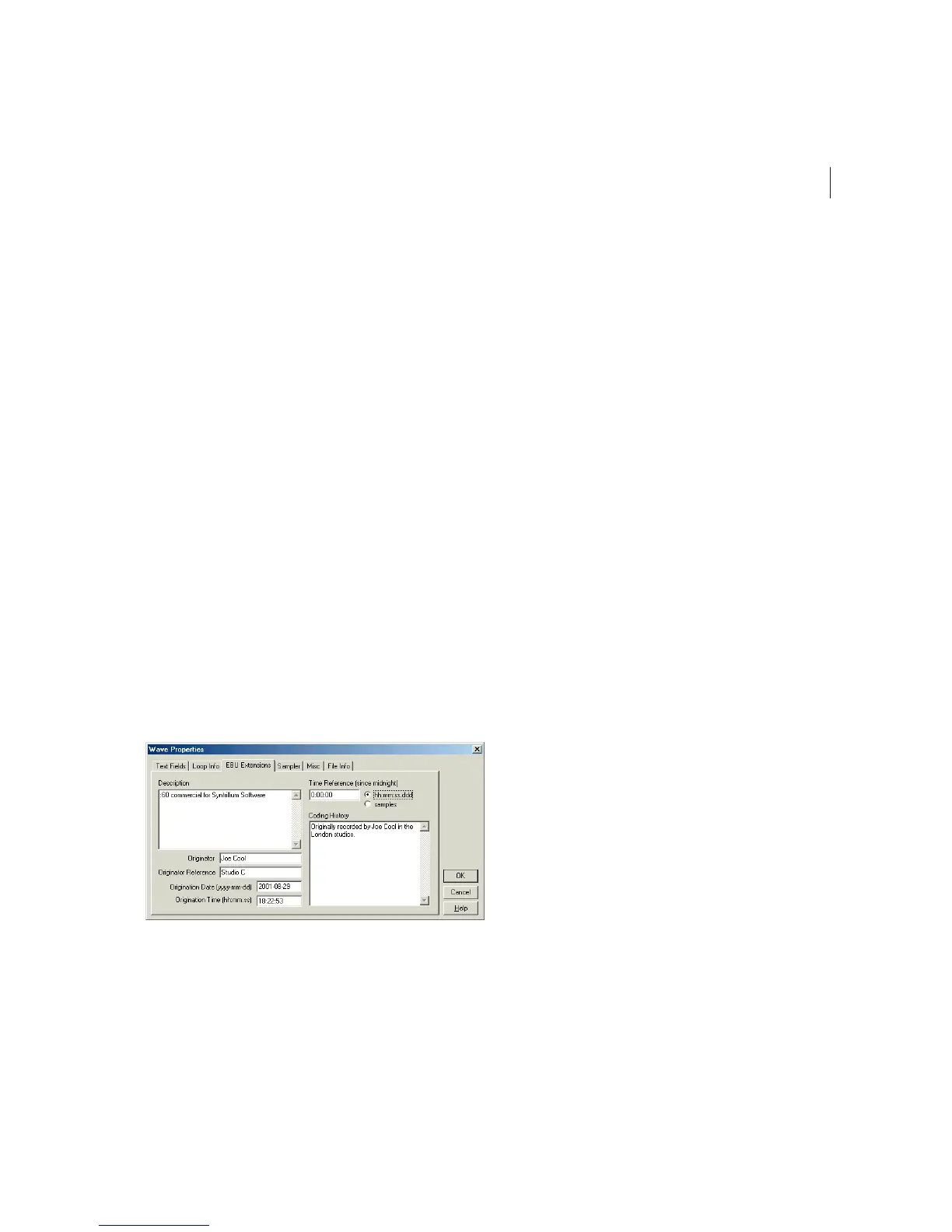 Originator Enter the name of the audio file’s producer (up to 32 characters) in this field.