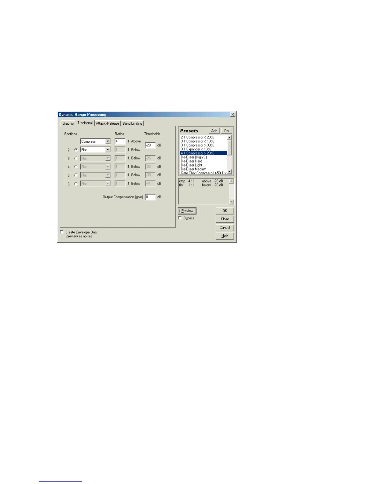 Dynamics Processing dialog – Traditional tab