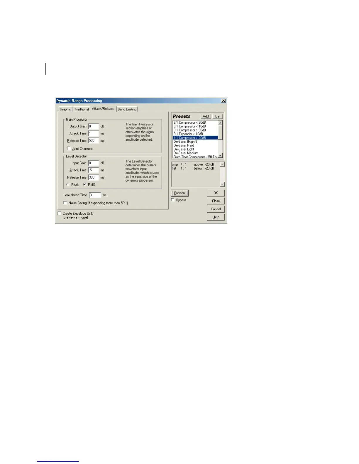 Note: If the sum of Attack and Release times is too short (less than about 20 milliseconds total), audible effects, such as a