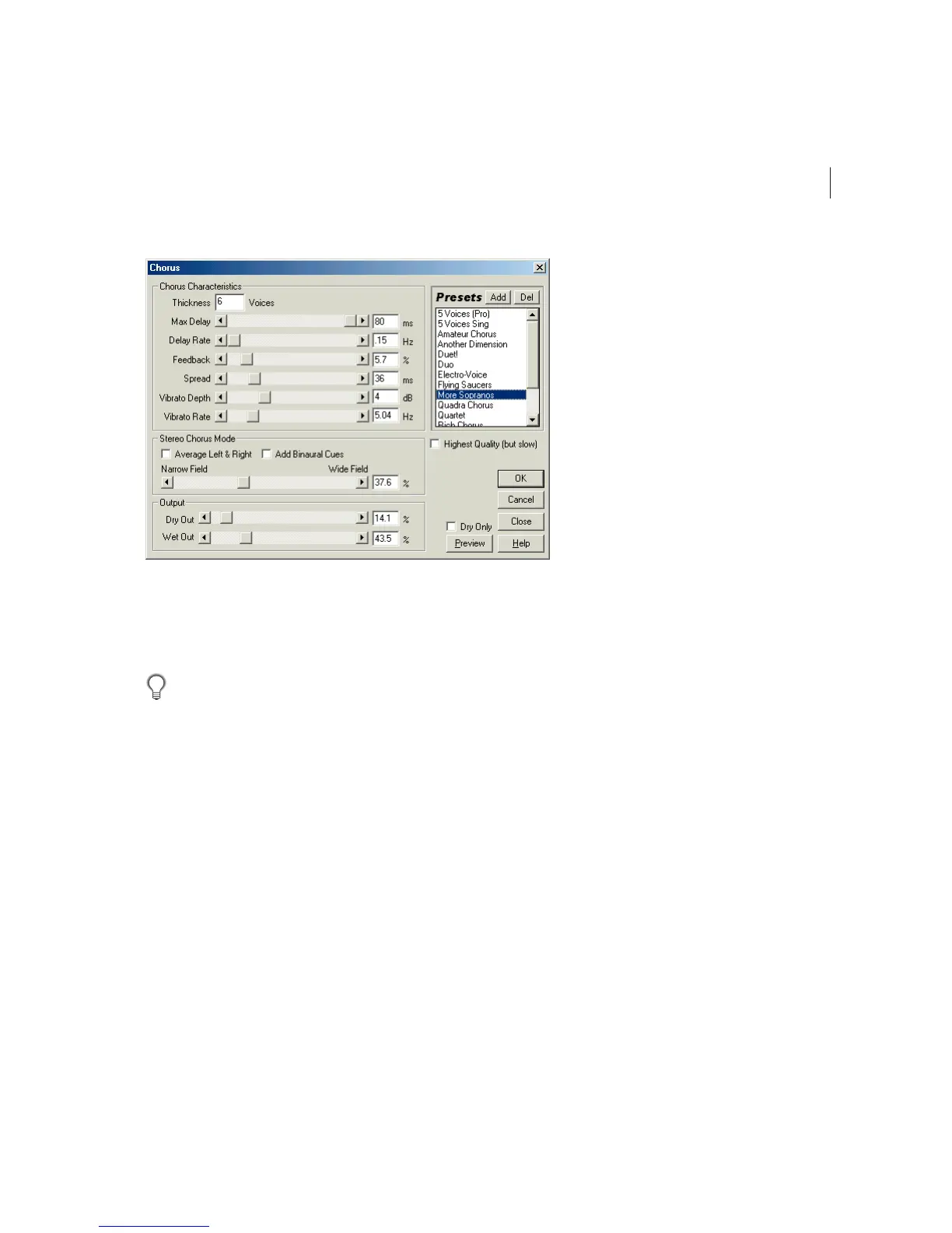 Adobe Audition uses a direct-simulation method of achieving the chorus effect, which means that each voice (or layer)