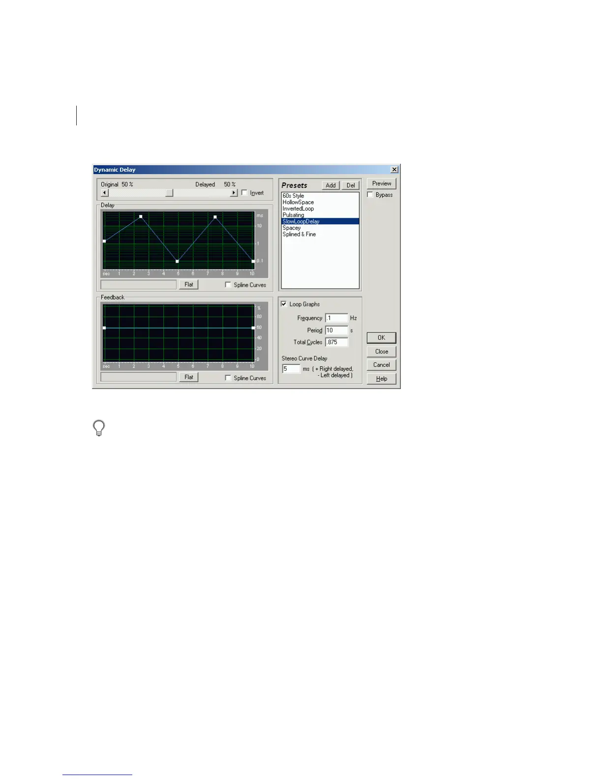 Delay Graph Use the Delay Graph to specify the amount of delay in the Dynamic Delay effect. The x-axis (horizontal