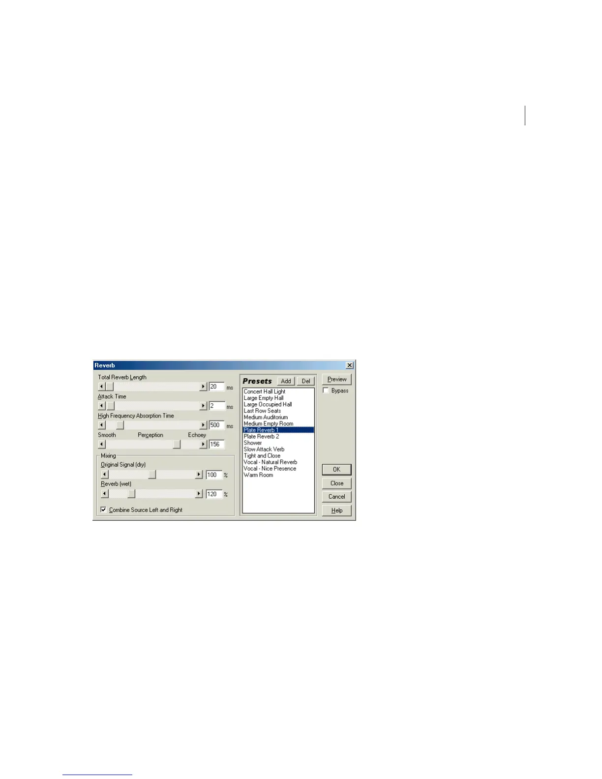 Presets Adobe Audition comes with several QuickVerb presets. More information on presets can be found in the
