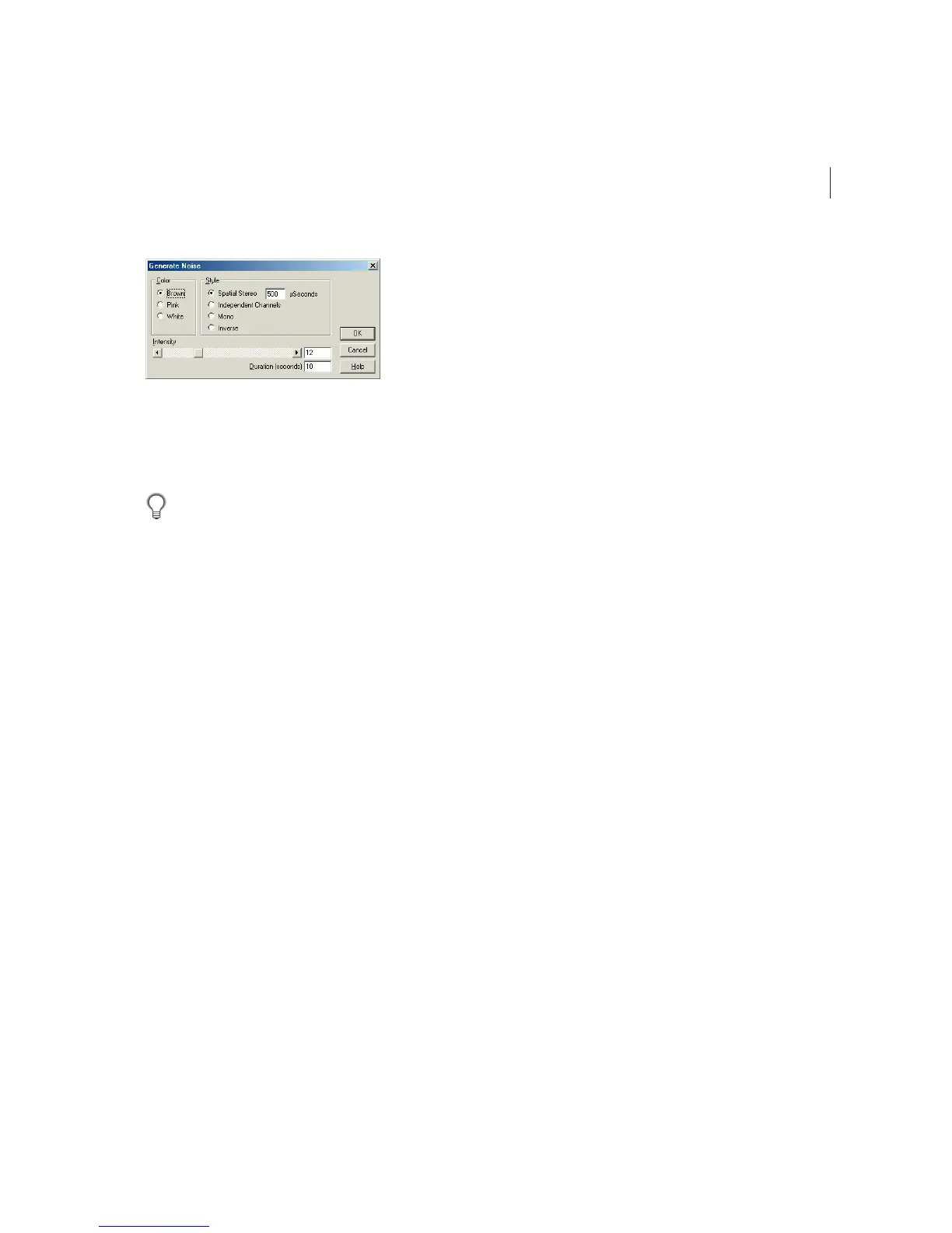 • Independent Channels: Select this option to tell Adobe Audition to generate noise by using two unique noise sources,
