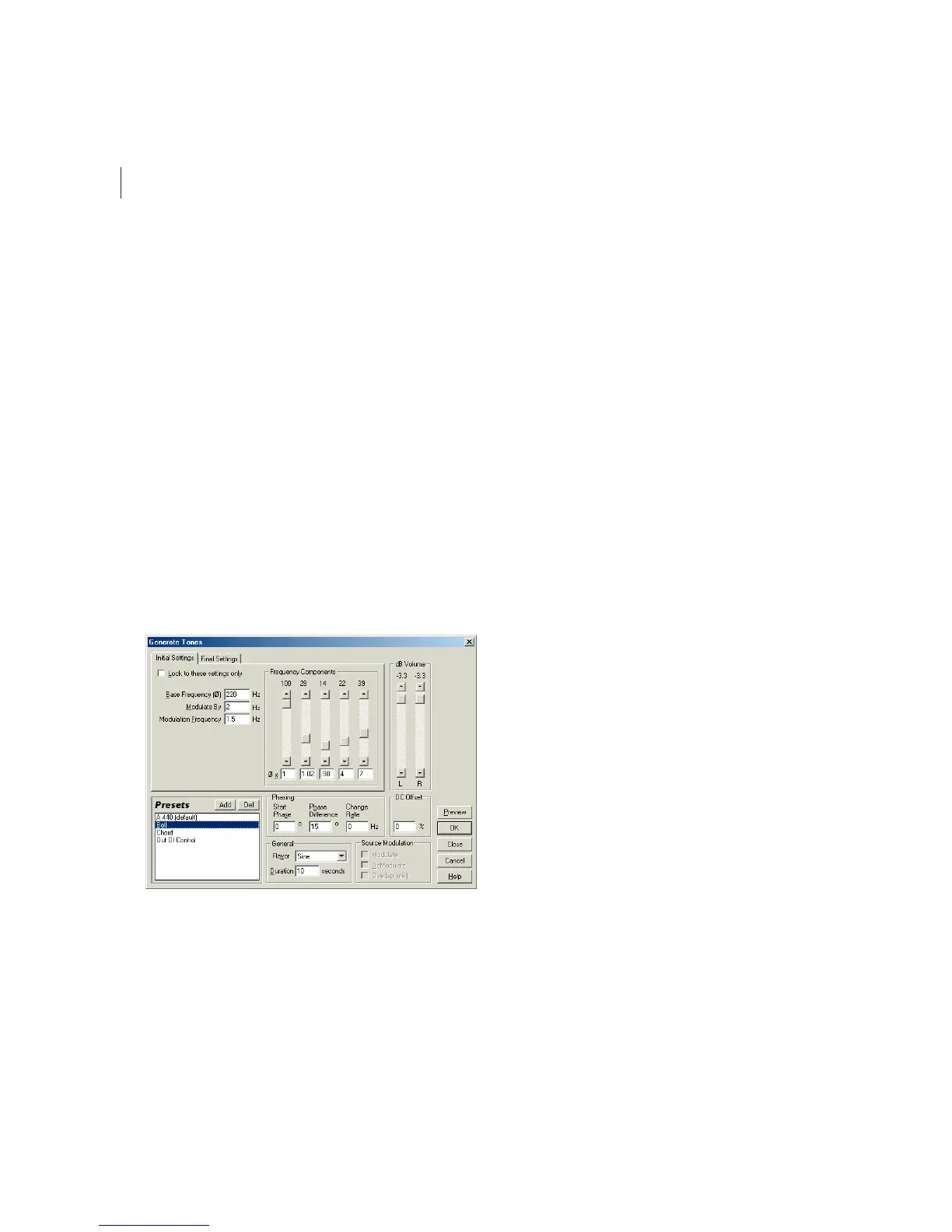 Generate Tones dialog