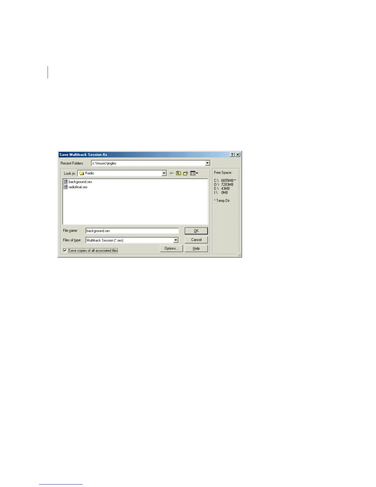 Options When the Save copies of all associated files box is checked, the Options button is enabled. Pressing it brings up
