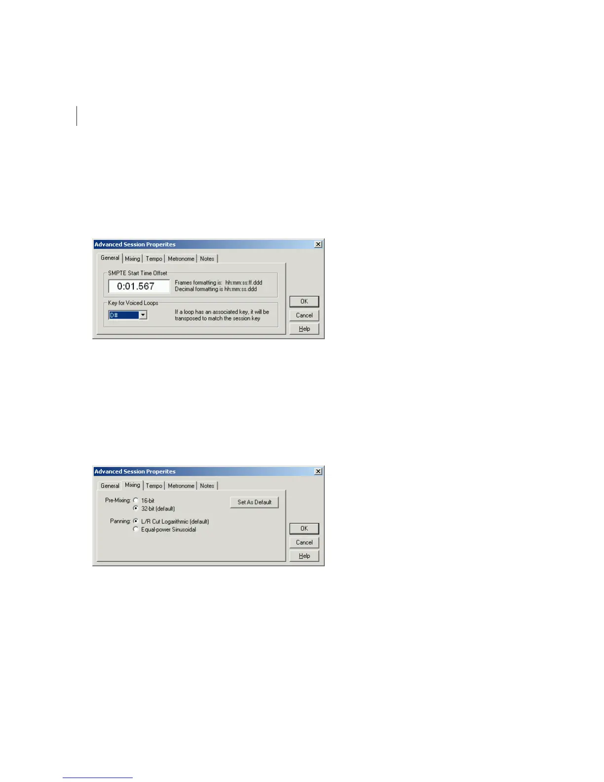 The Mixing tab of the Advanced Session Properties window