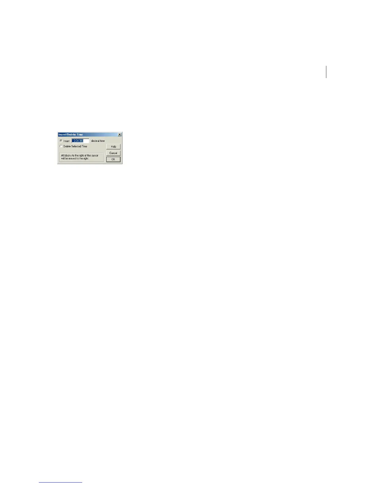 Delete Selected Time If this option is chosen, the highlighted area will be removed, with all blocks to the right of the