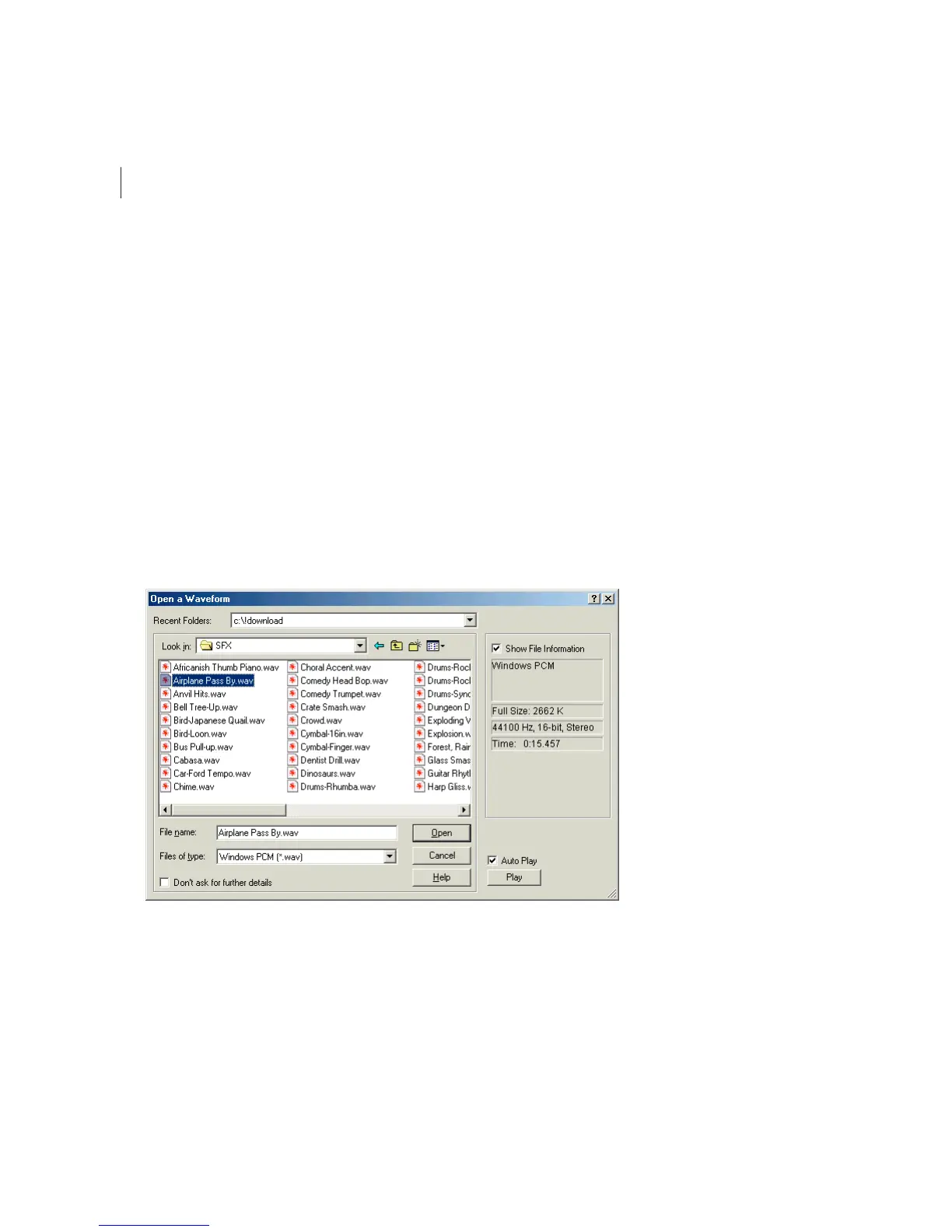 Waveform dialog appears, allowing you to select one or more audio files for listening or modification. This dialog looks