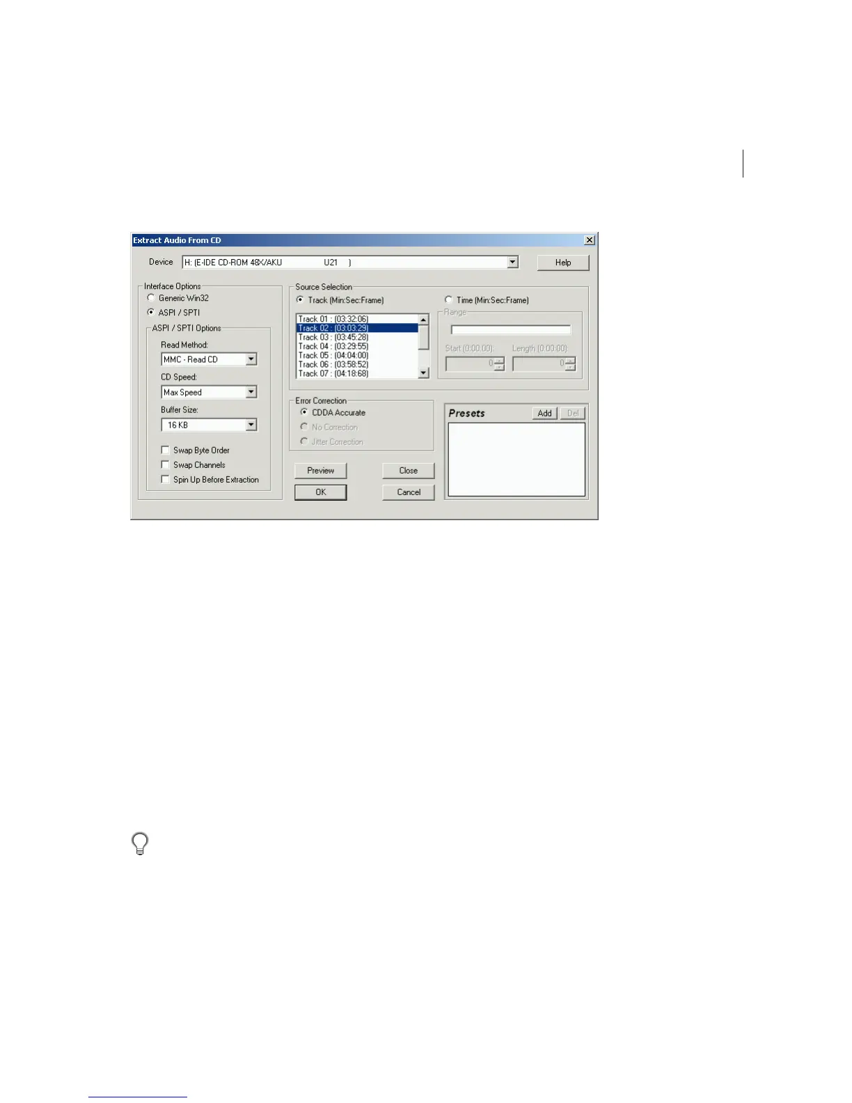 of compact disc audio.) Click on the desired track names to select them for extraction, simultaneously holding down
