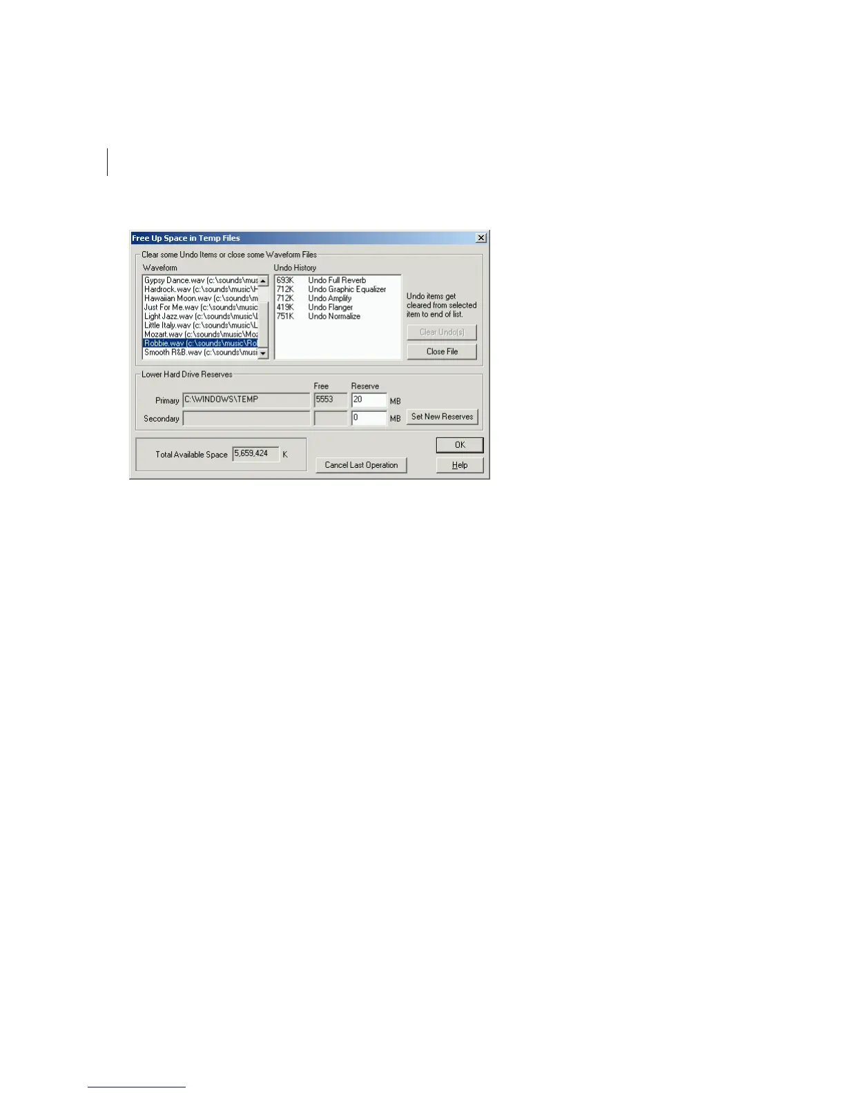 hard drive space as well. (The waveform in the currently active editing window can’t be closed this way, however.)