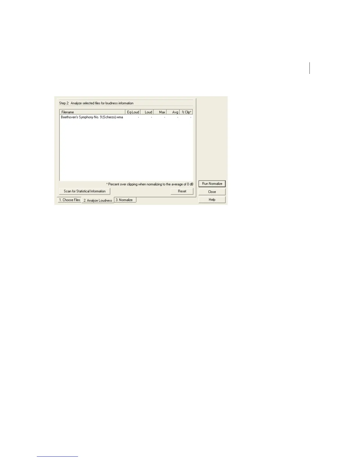 Reset Press this button to clear all of the normalization statistics for the files in the list. You can select any subset of files