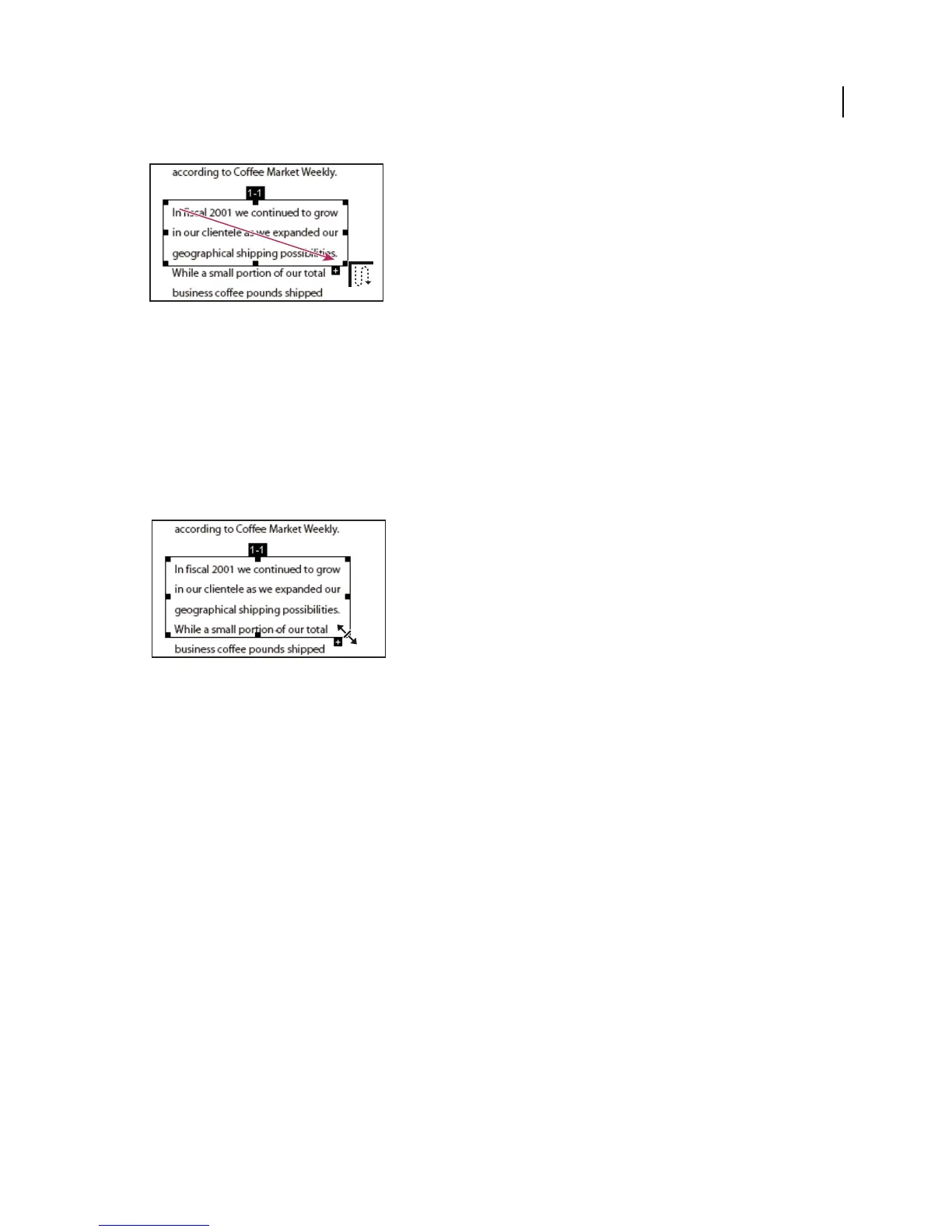 • To resize the box, drag a center handle to change only height or width, or drag a corner handle to change both