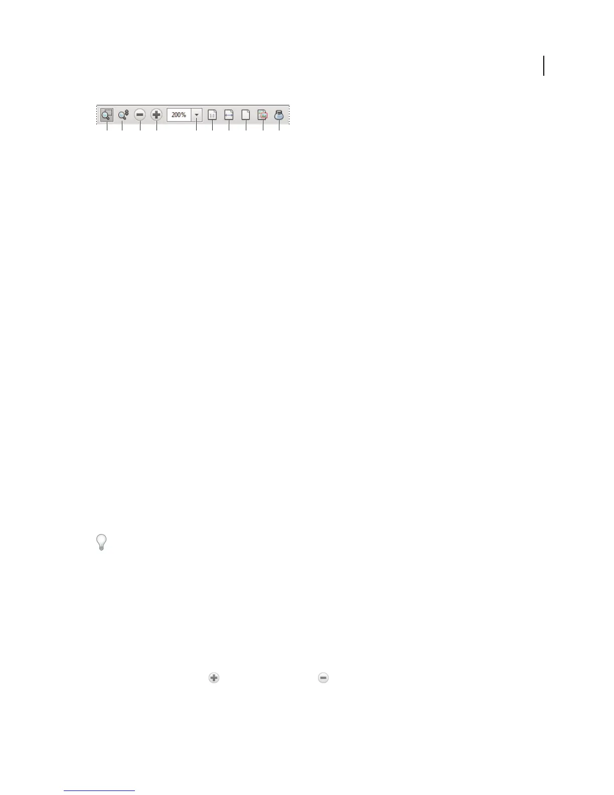 • Zoom In and Zoom Out buttons change the document magnification by preset levels.