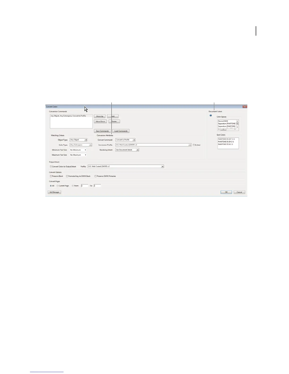 viewing, the Convert Colors feature changes the color values in the document. In the Convert Colors dialog box, you