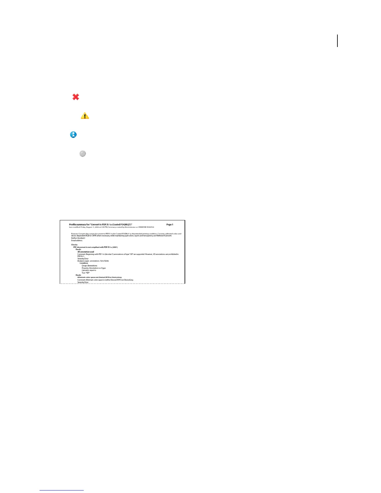 ❖ In the Preflight dialog box, select a profile, and choose Create Profile Summary from the Options menu.