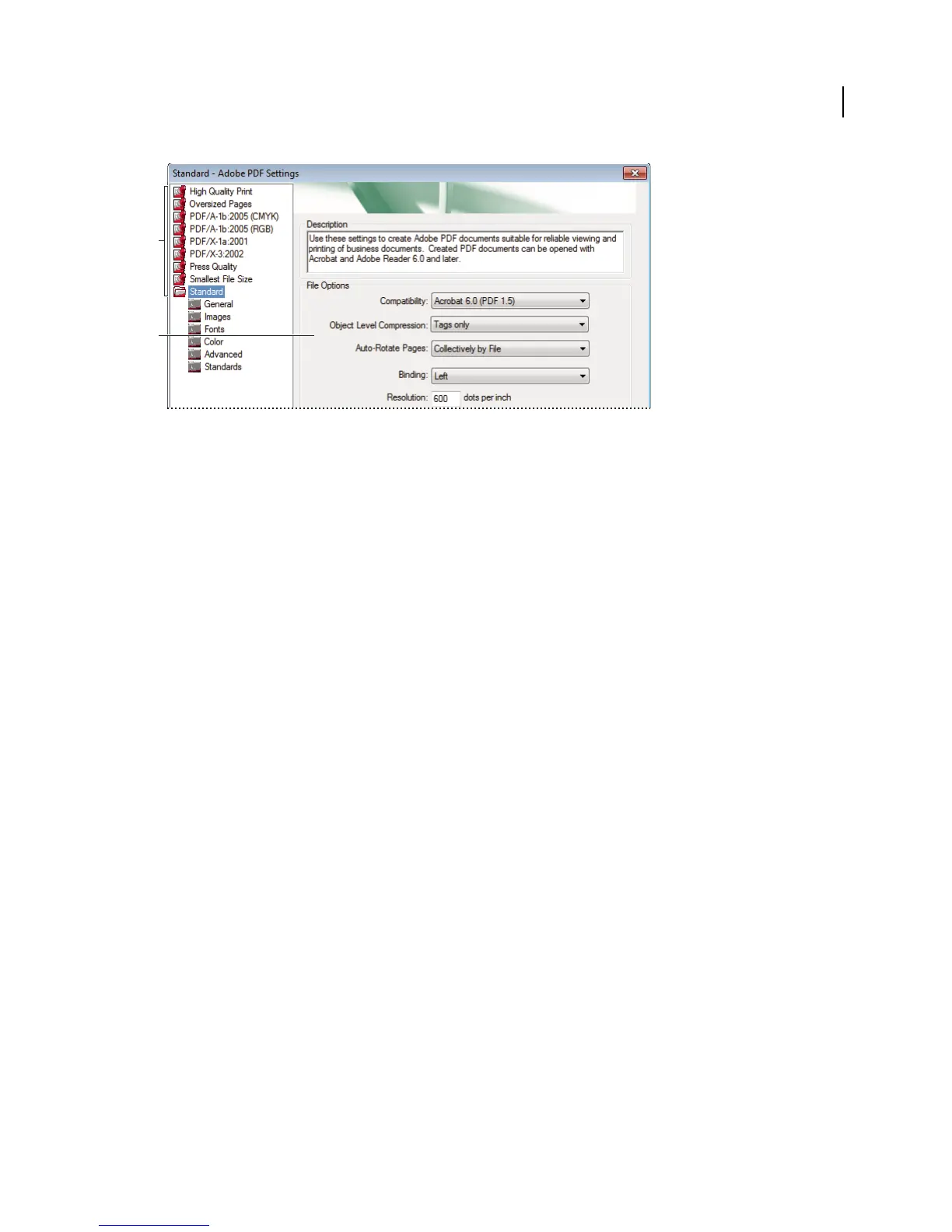 Compatibility Sets the compatibility level of the PDF. Use the most recent version (in this case, version 1.7) to include