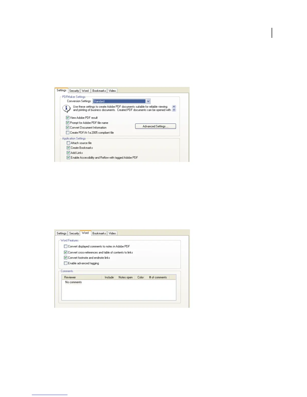 settings, prompts may appear allowing you to select other options when you create the PDF.