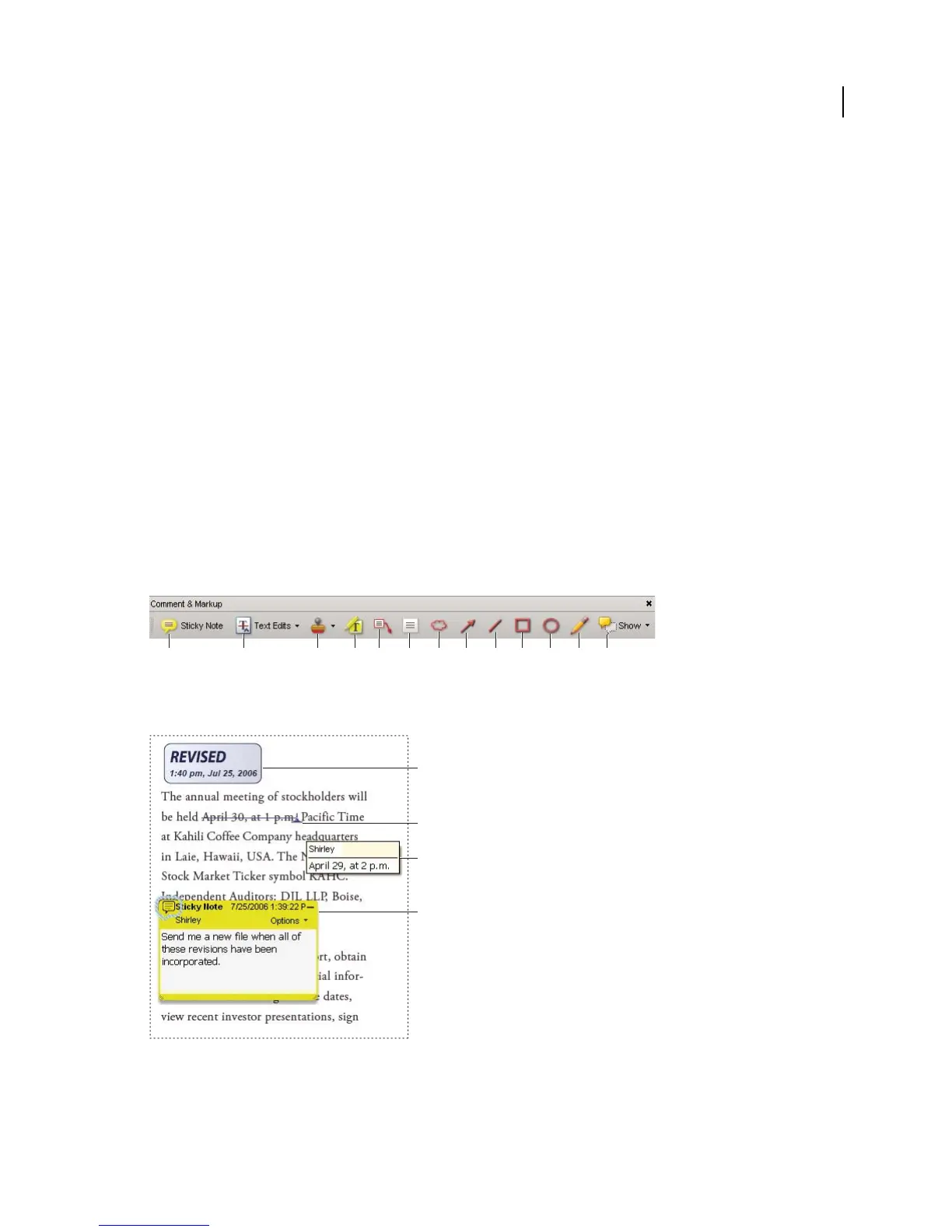 pop-up note. Text-editing tools let you add editing marks to indicate changes you want in the source document. Most