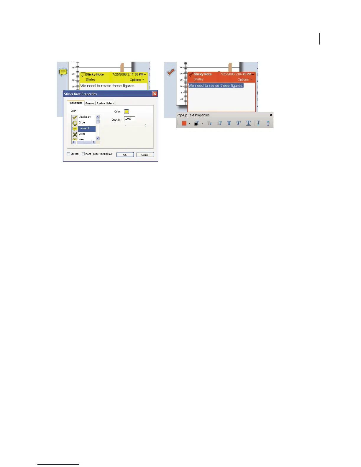 • Select Locked at the bottom of the Properties dialog box to prevent the comment from being edited or deleted.
