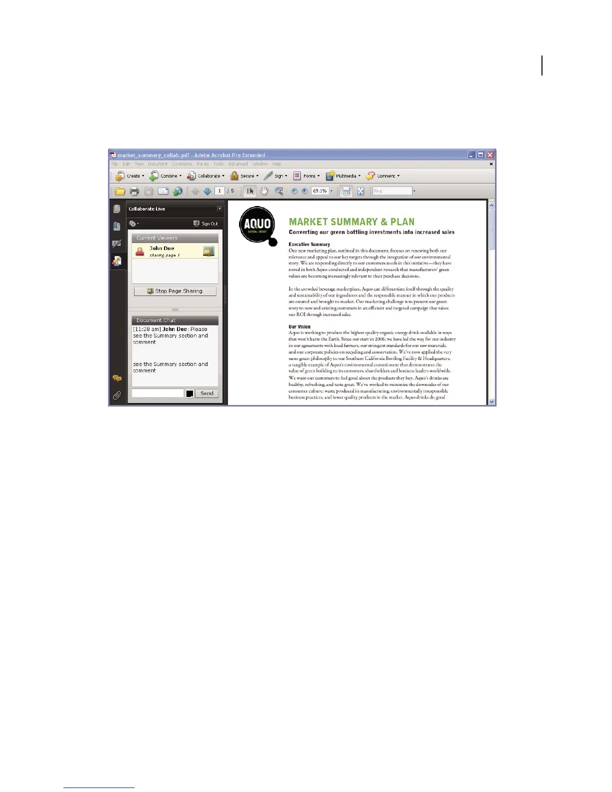 To discuss the document, type chat messages in the box at the bottom of the Collaborate Live navigation pane. Click