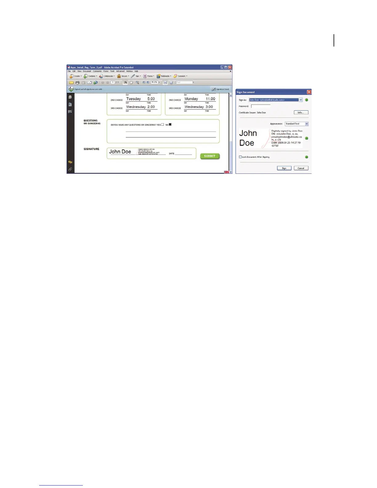 In the Sign Document dialog box, select an appearance, and then add any information it requires, such as the