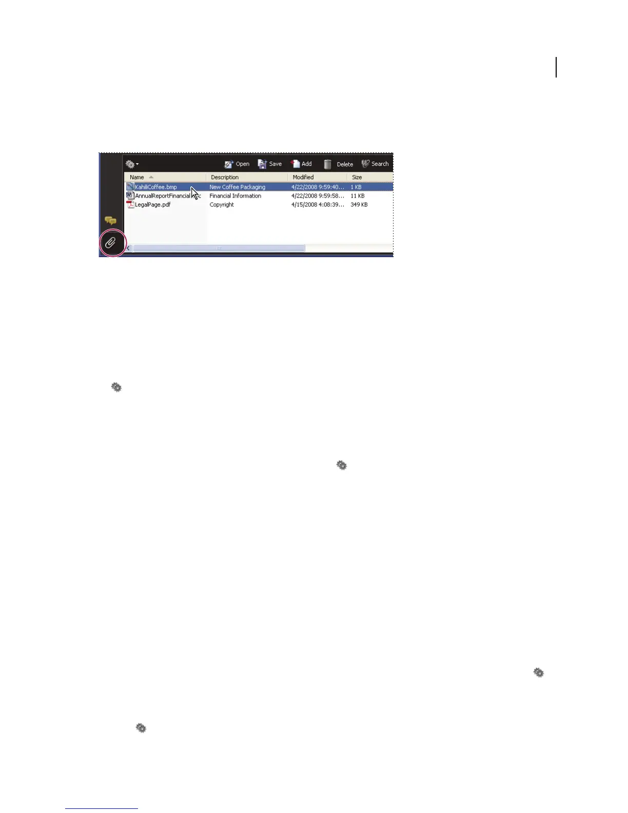 ❖ In the Attachments panel, select the attachment, and then choose Open Attachment from the options menu .