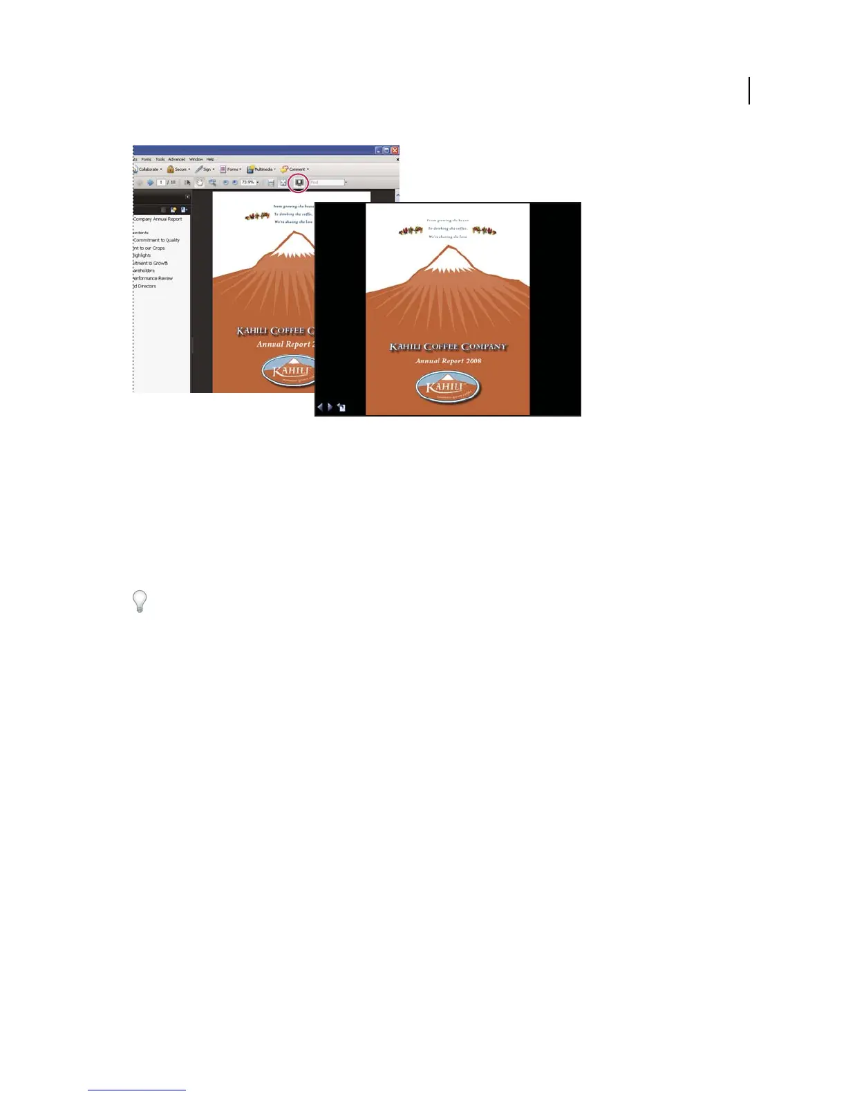Use the Full Screen button (circled) to view and navigate PDFs as a slide show.
