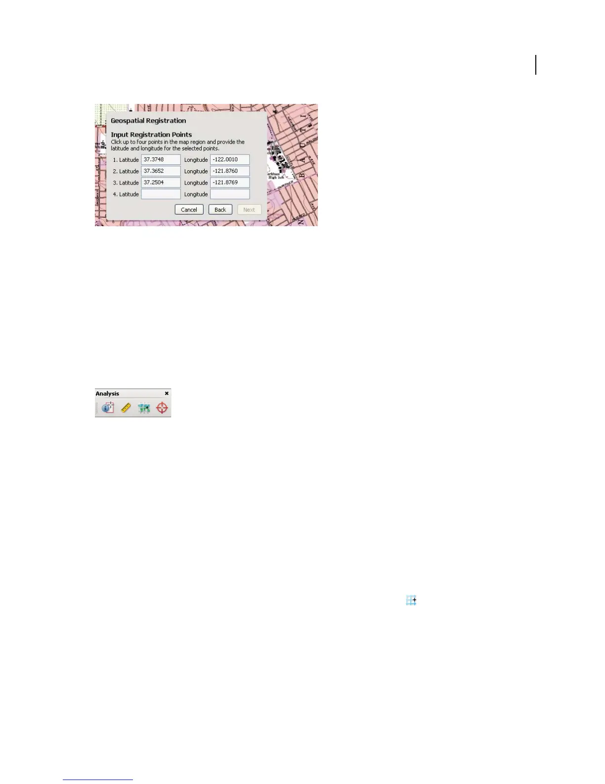 Geospatial tools on the Analysis toolbar.