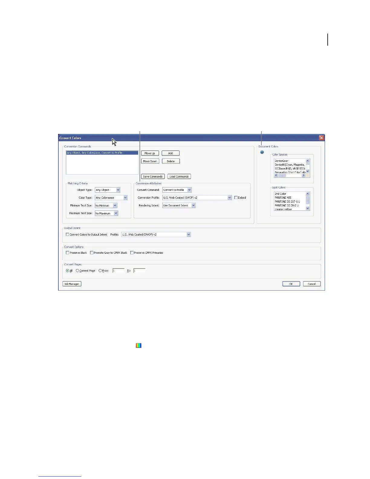 viewing, the Convert Colors feature changes the color values in the document. In the Convert Colors dialog box, you