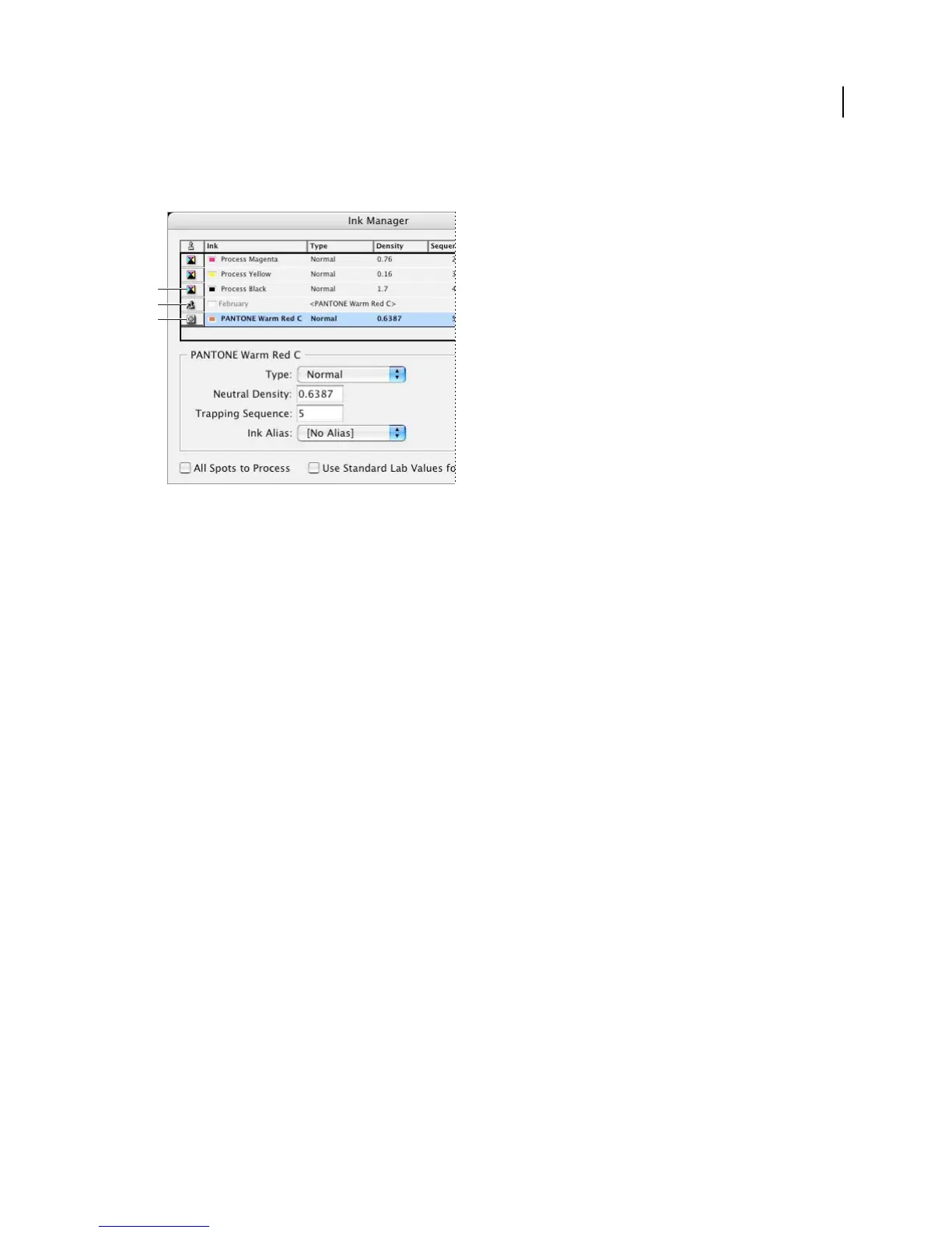 • To separate individual spot colors, click the ink-type icon to the left of the spot color or alias ed spot color. A process