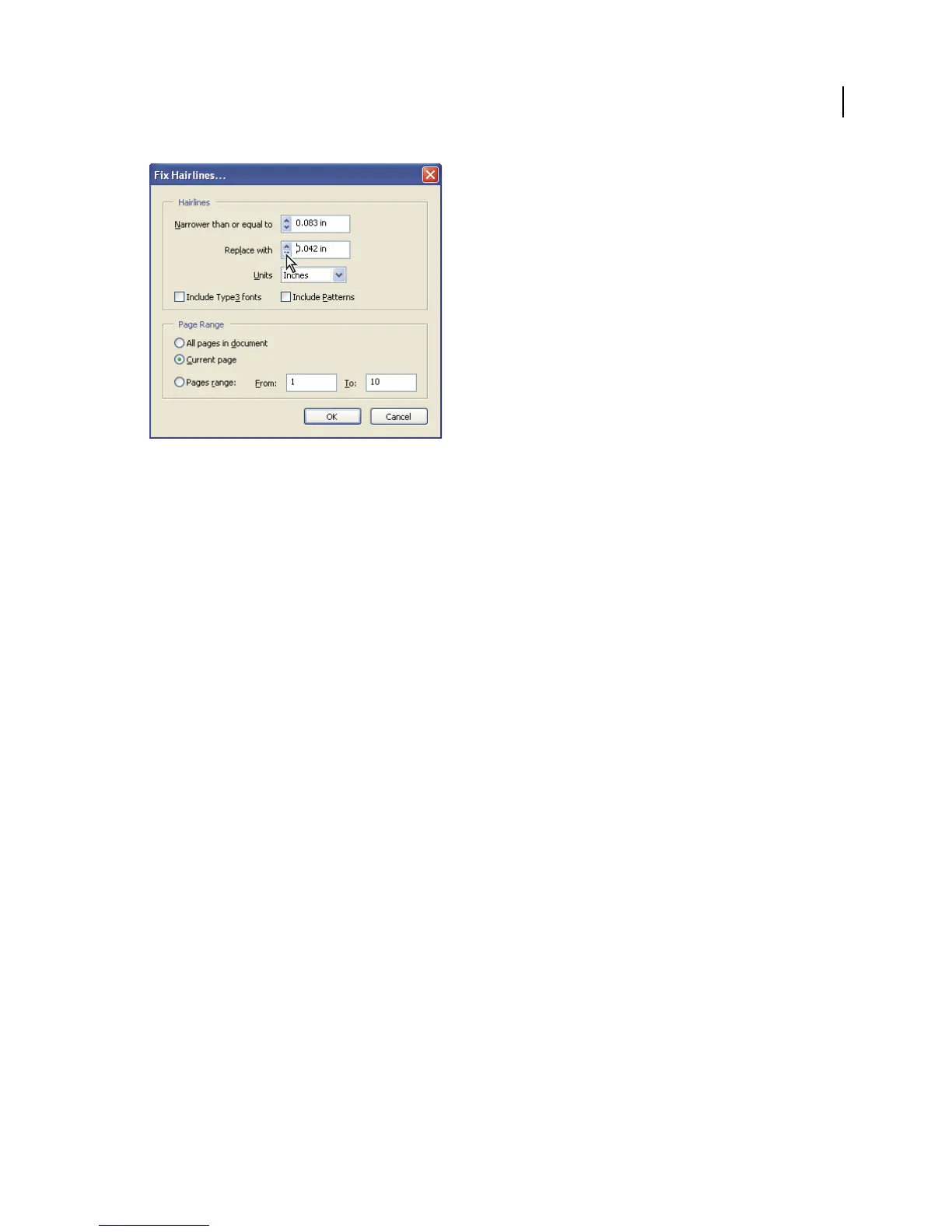 4 (Optional) Select Include Type3 Fonts or Include Patterns to replace hairlines in Type 3 characters or patterns with