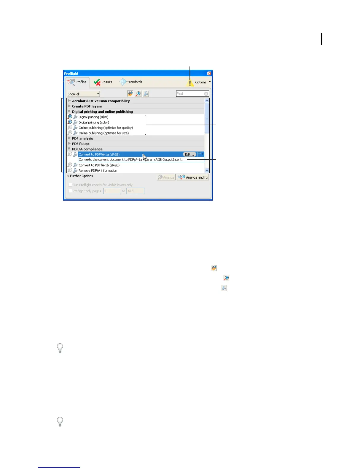 You can also double-click a profile in the list to run the preflight inspection. If you double-click the file, profiles that