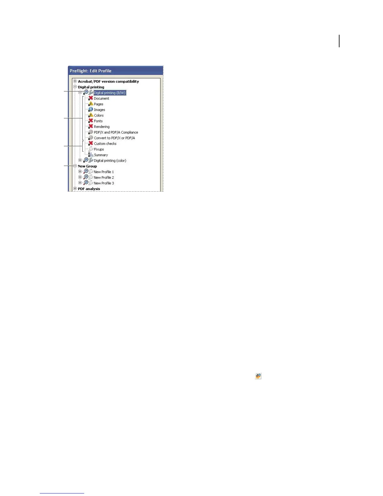 1 In the Profiles panel of the Preflight dialog box, click the Select Profiles button .